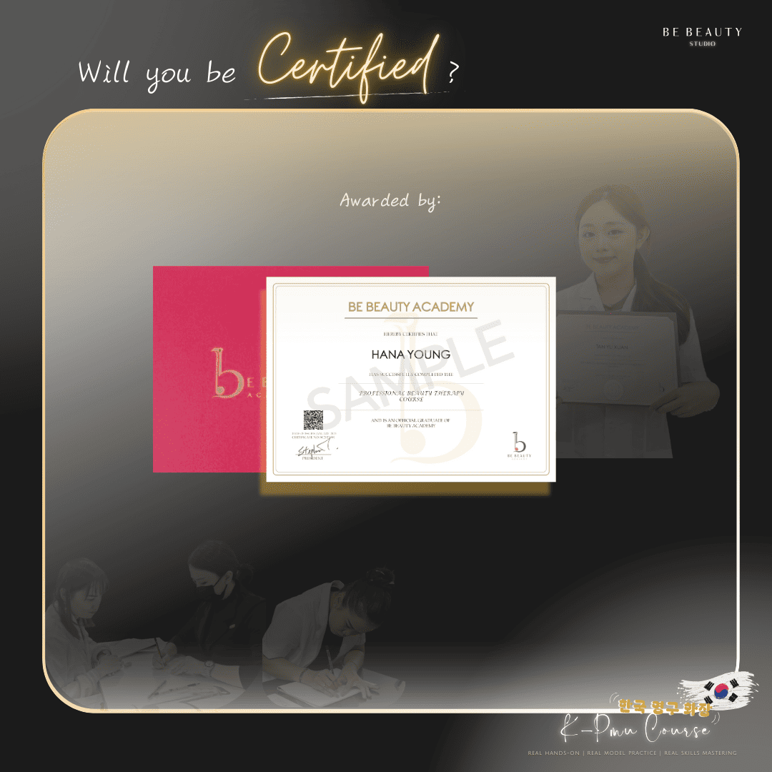 Upon completion of course, candidate will be qualified as Professional Certificate awarded by Korean Ain Academy and Be Beauty Academy.