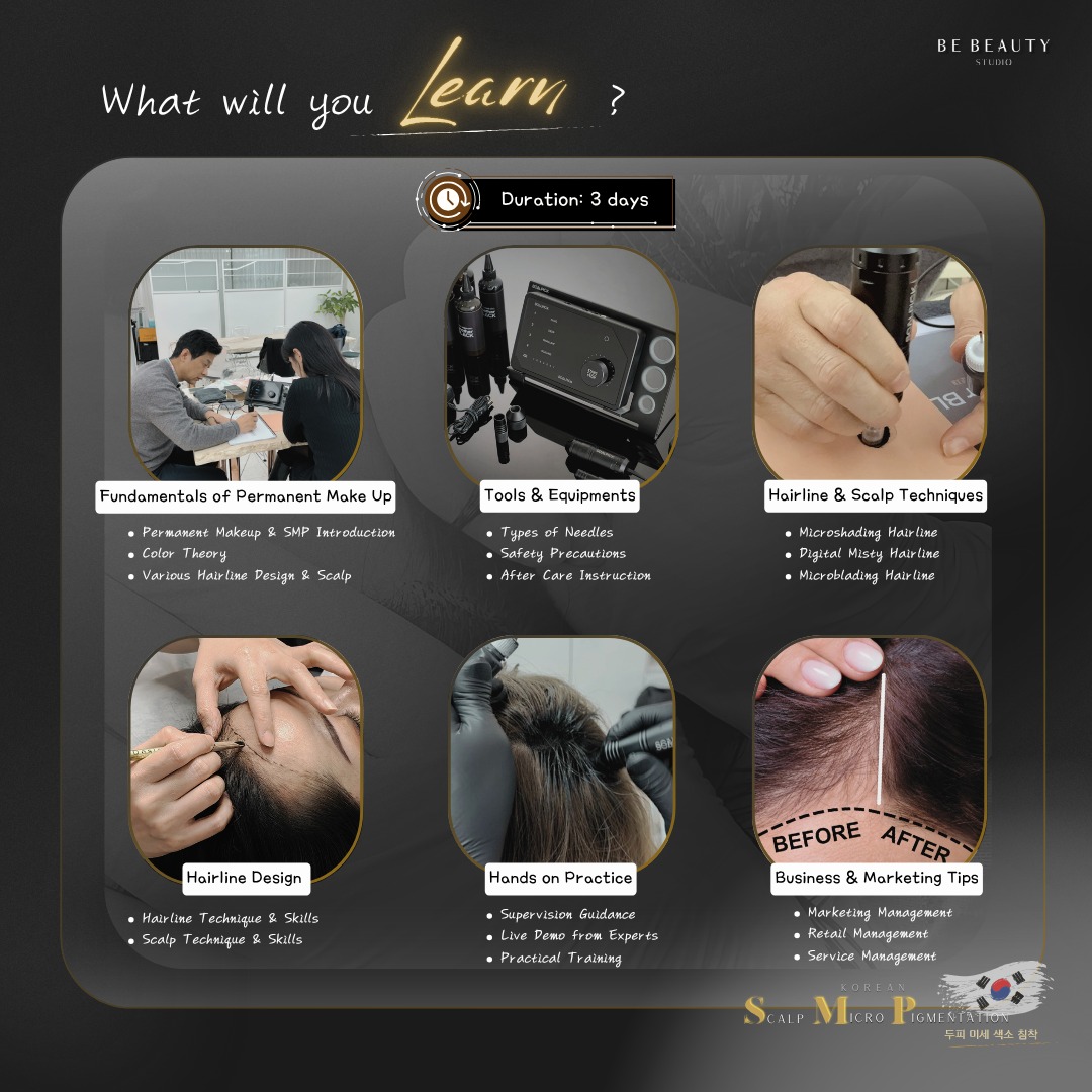 Be Beauty Academy menawarkan Kursus SMP Mirkopigementasi Kulit Kepala